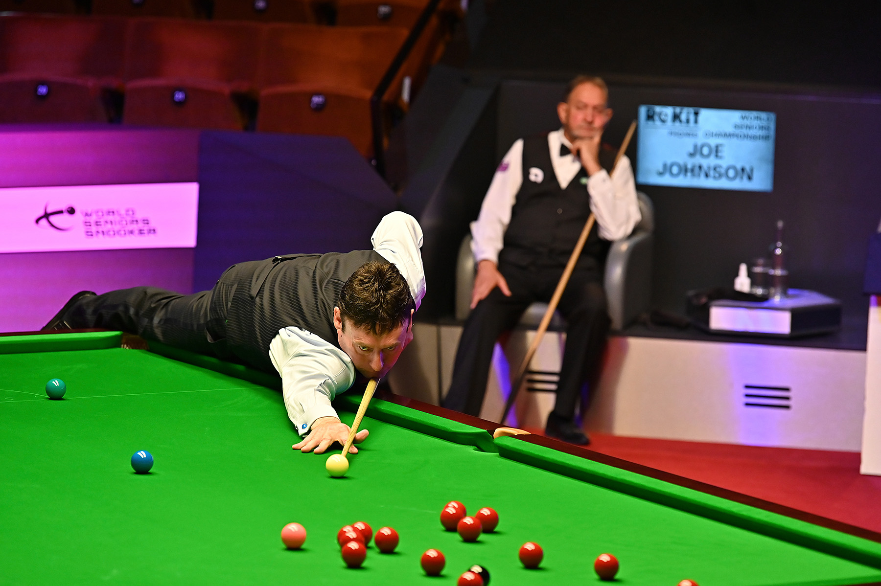 Johnson defeated White here on his way to winning last year’s Seniors Masters, and the Yorkshireman briefly threatened a replay when he claimed a scrappy first frame of the match on the pink. However, ‘The Whirlwind’ managed to relax, making a 90 break to get on the board himself before racking up further contributions of 73, 41 and 71 to run out a 4-1 victor with an impressive 92% pot success rate.