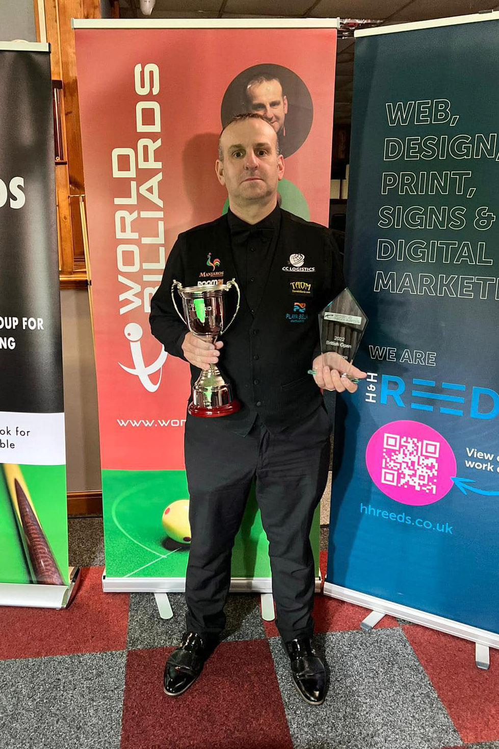 A total of 60 players began the level 3 world ranking event which was sponsored by the host venue, H & H Reeds, and Carlisle & District Billiards & Snooker. Causier was in irresistible heavy scoring form during the groups phase, compiling two centuries, two double-centuries and efforts of 440 and 459 as he won all four of his fixtures and topped Group A.