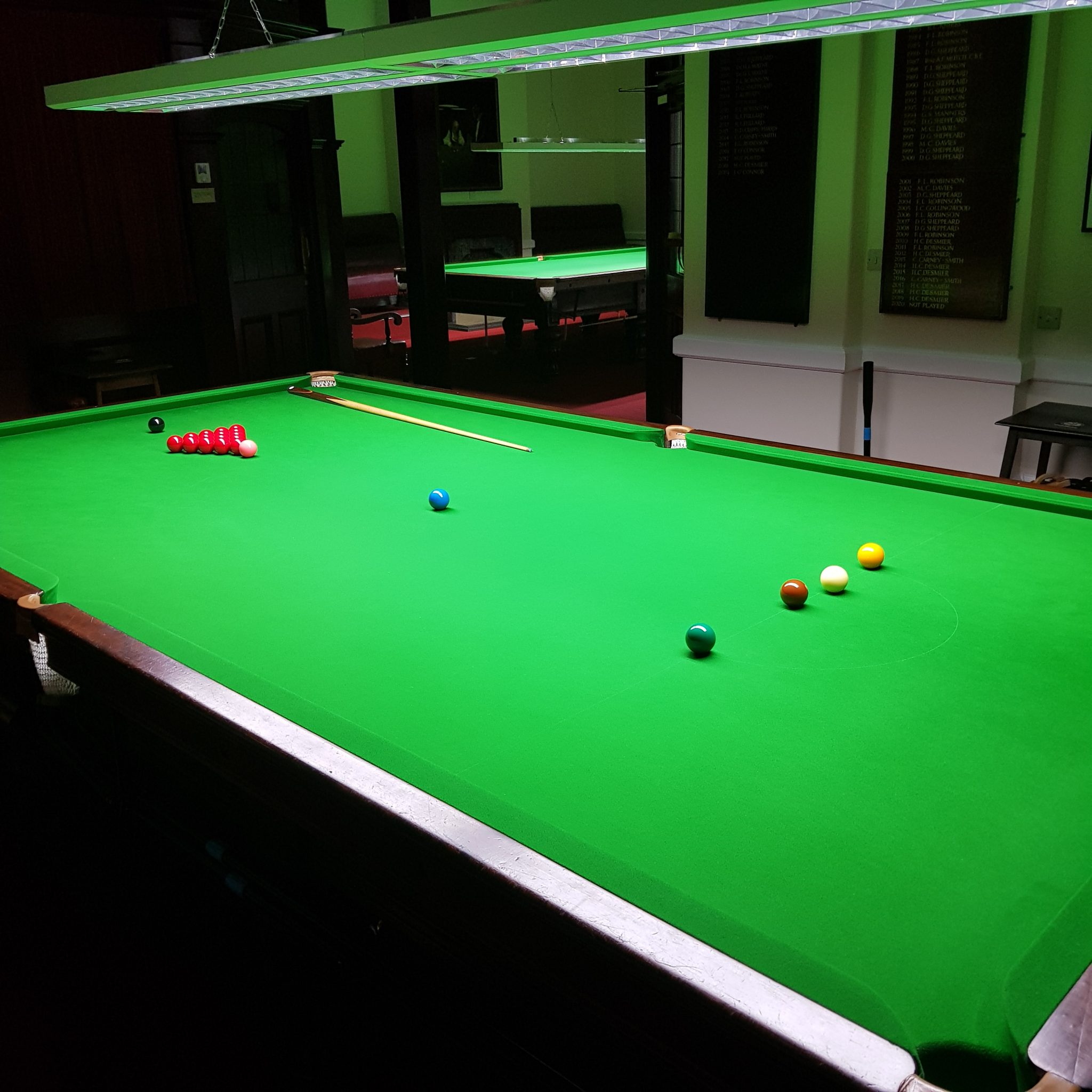 We are a small members’ club with two classic snooker tables, the finest West of England 6811 Gold Tournament cloth, steel-block cushions, Aramith 1G matched balls on both tables and first-class LED table lighting – all the facilities for top match play but for the personal enjoyment of the members.