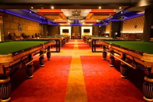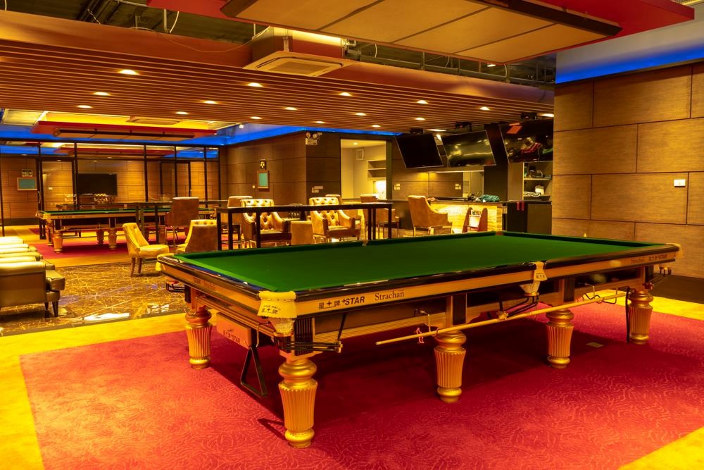Tables are so far apart from each other that customers can enjoy the luxury of the first-class exclusive club comprising of one VIP room, two Star tables and seven Rileys steel block cushion tables using Hainsworth cloth and Aramith SuperPro 1G snooker balls.